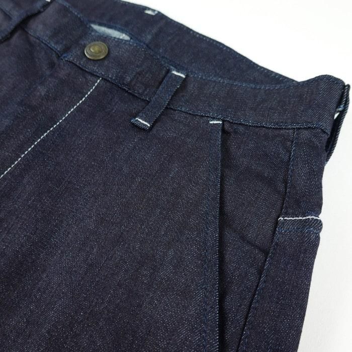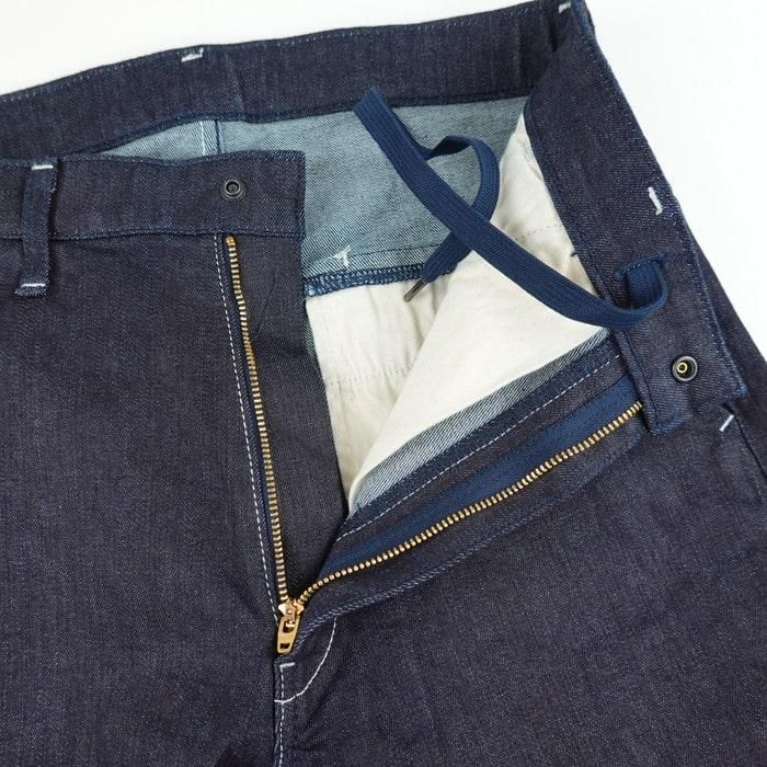 ジッパーフライ、スラッシュポケット、内紐のイージー仕様はスリムタイプと同じディテール。