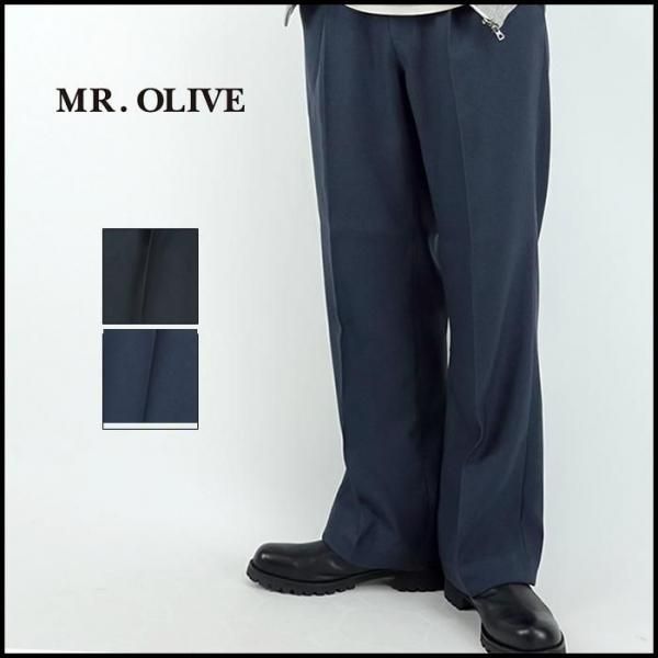 MR.OLIVEの名作、ポリエステルツイル素材のテーパードパンツ。 当店でもリピーター続出の一本ですが、その“兄弟モデル”として登場したのがこちらのワイドタイプです。