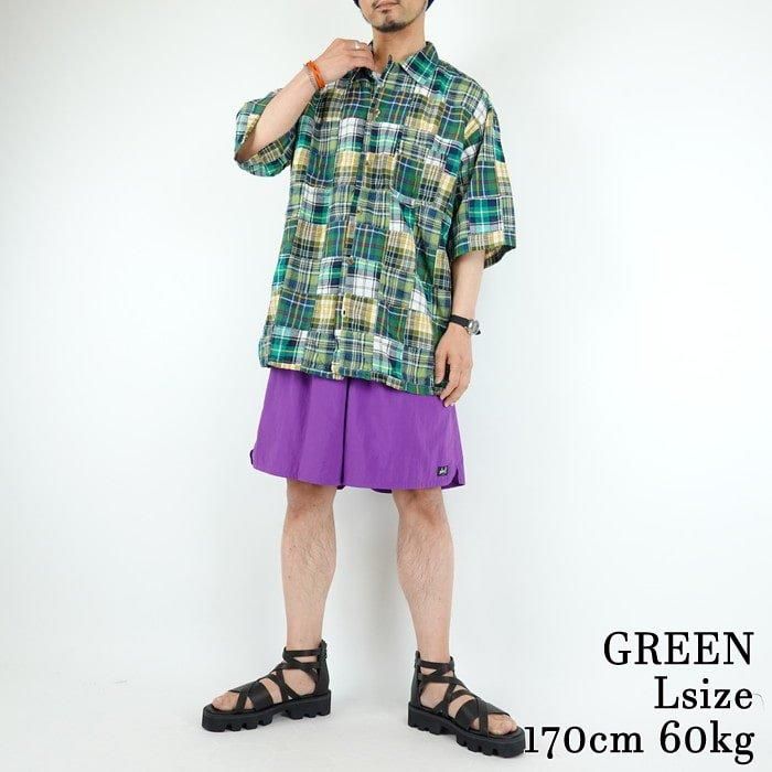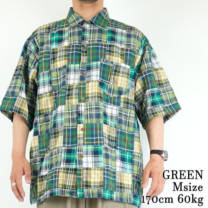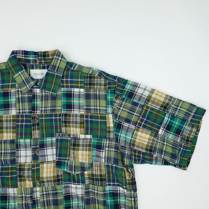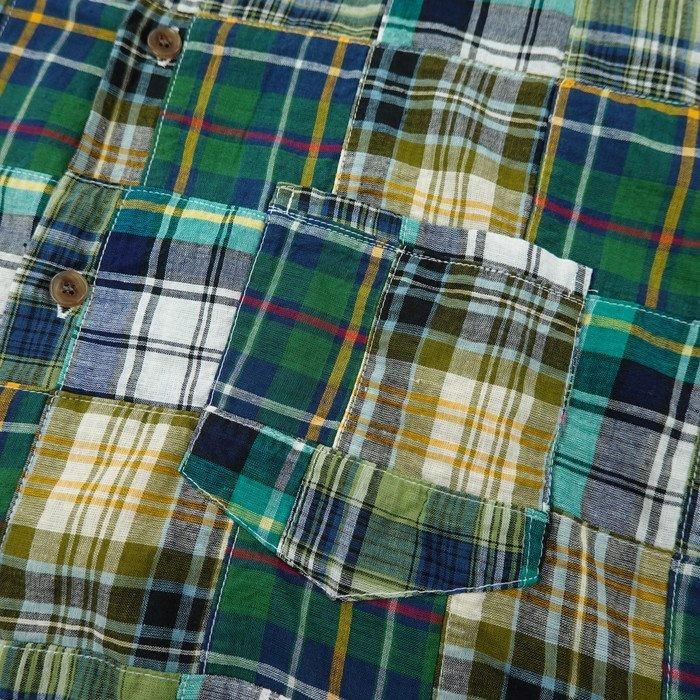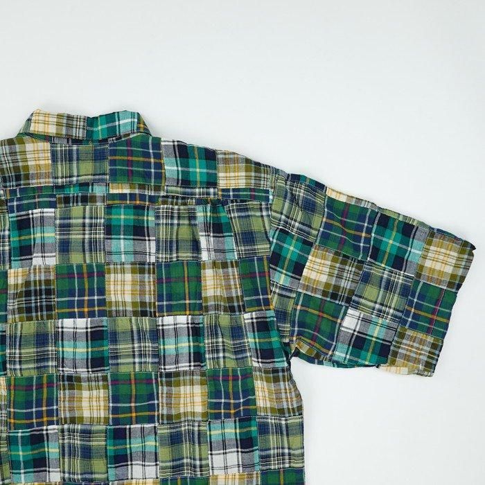 インド製マドラスチェック生地を使用した、半袖パッチワークシャツです。