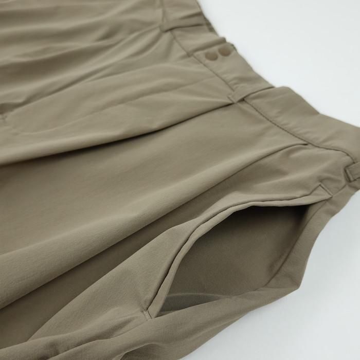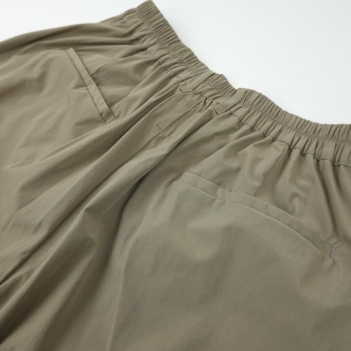 ナイロンのドライタッチな肌触りに4方向ストレッチを組み合わせ、暑い季節でも快適に過ごせるよう設計されたコクーンシルエットのパンツです。