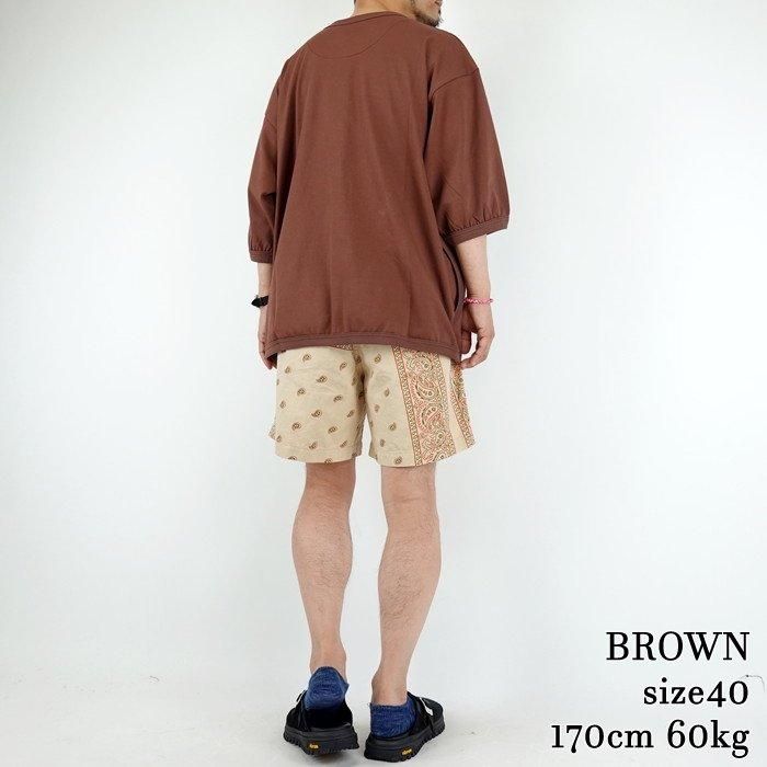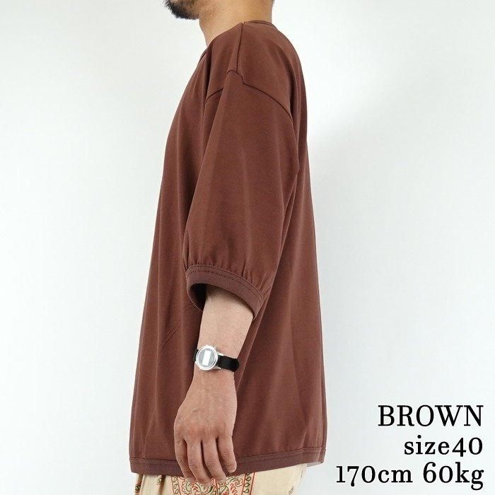 ドロップショルダーのリラックスシルエットが特徴で、五分袖のデザインのバランスも絶妙です。