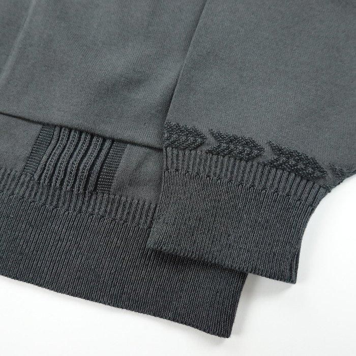 12ゲージ三本取り、30番手双糸を用いたしっかりとした編み地が、耐久性と着心地の良さを両立。