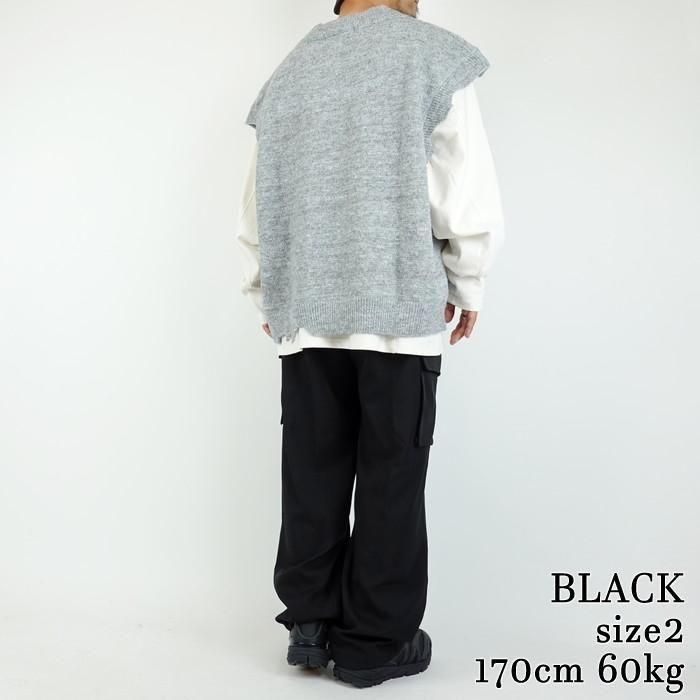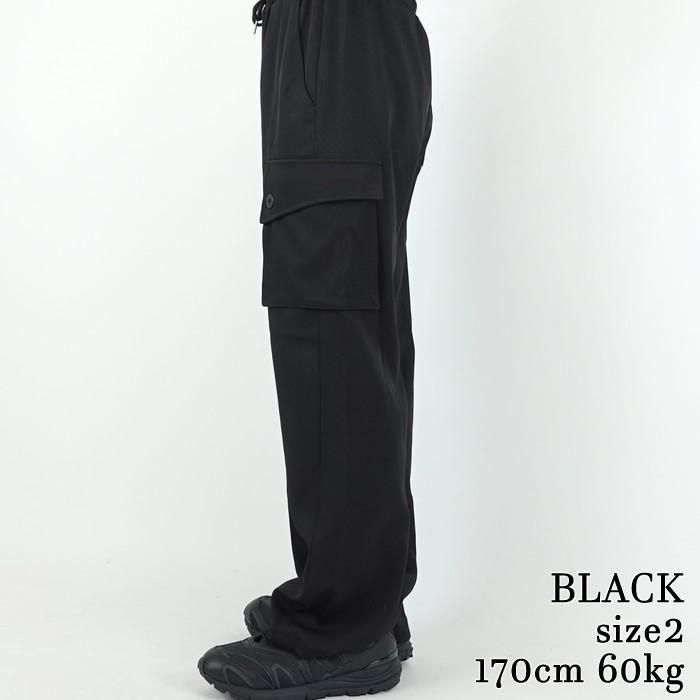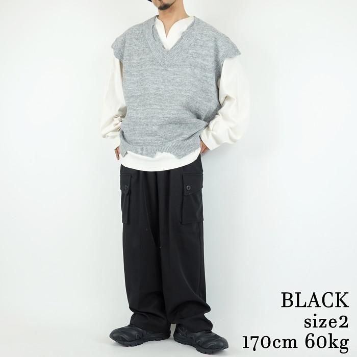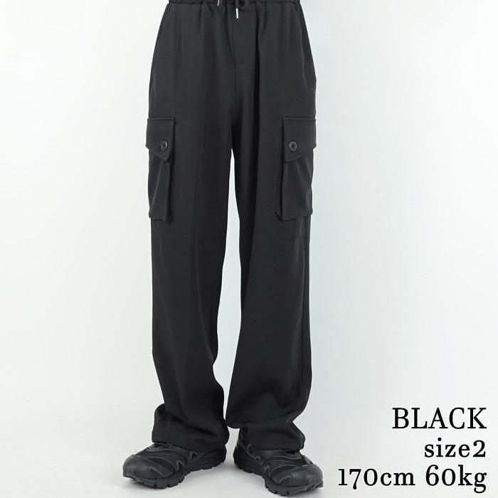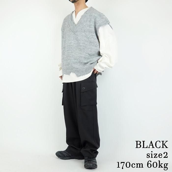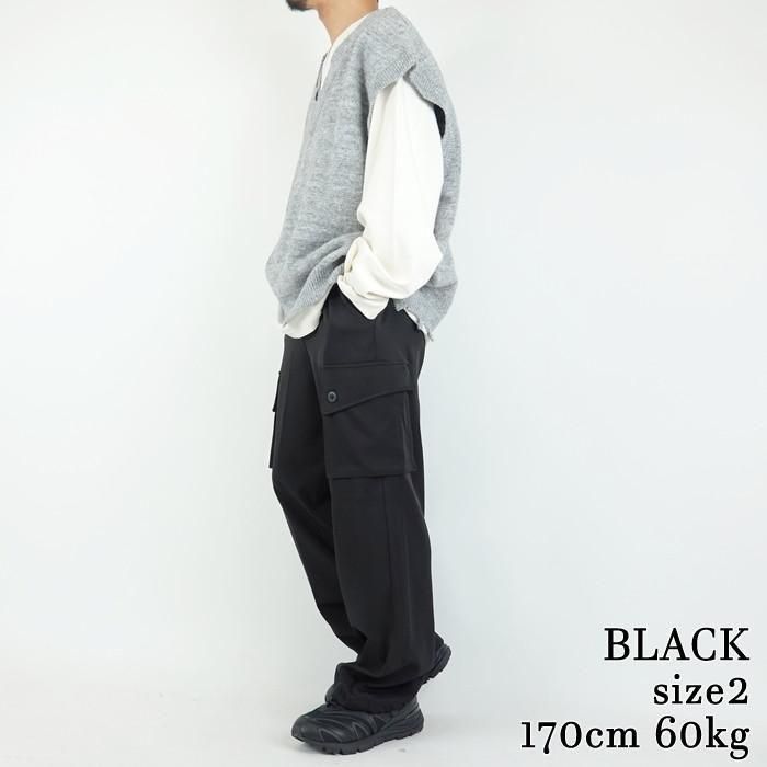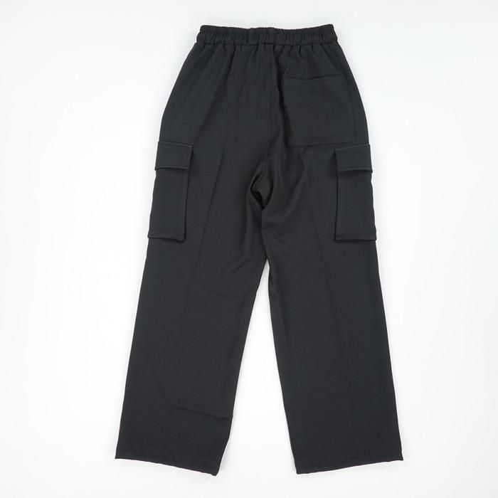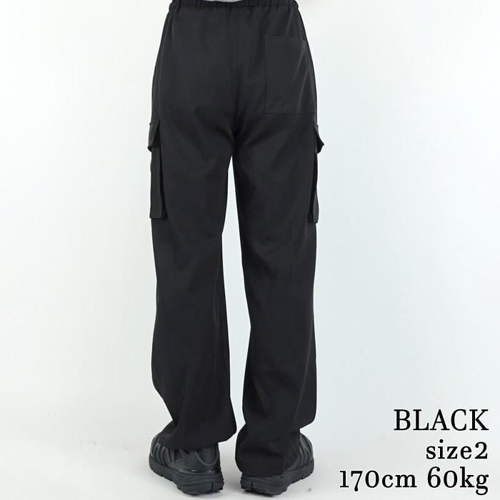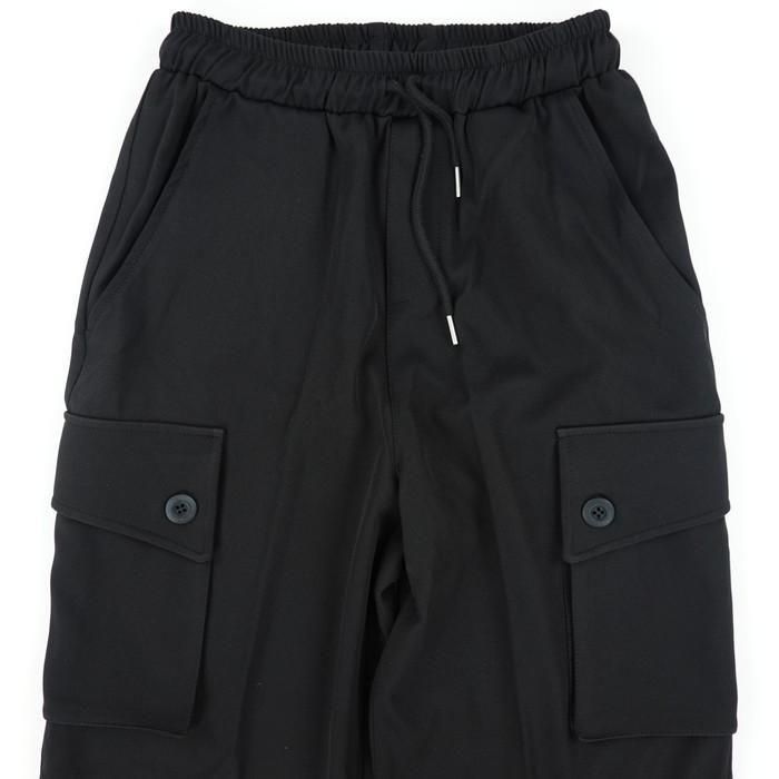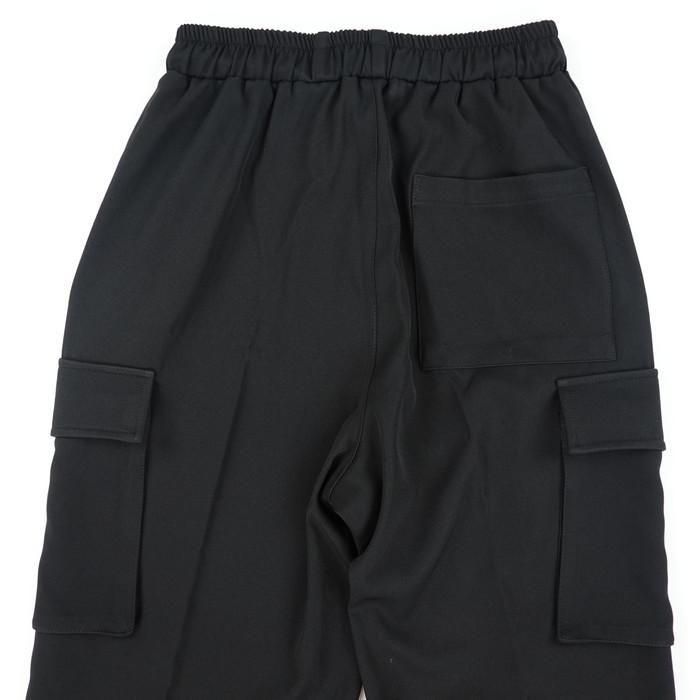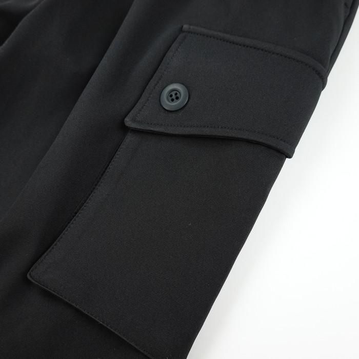 ・滑らかな落ち感のある素材を使い、カーゴパンツでもラフになりすぎないモードな印象