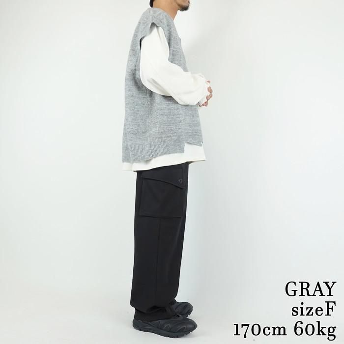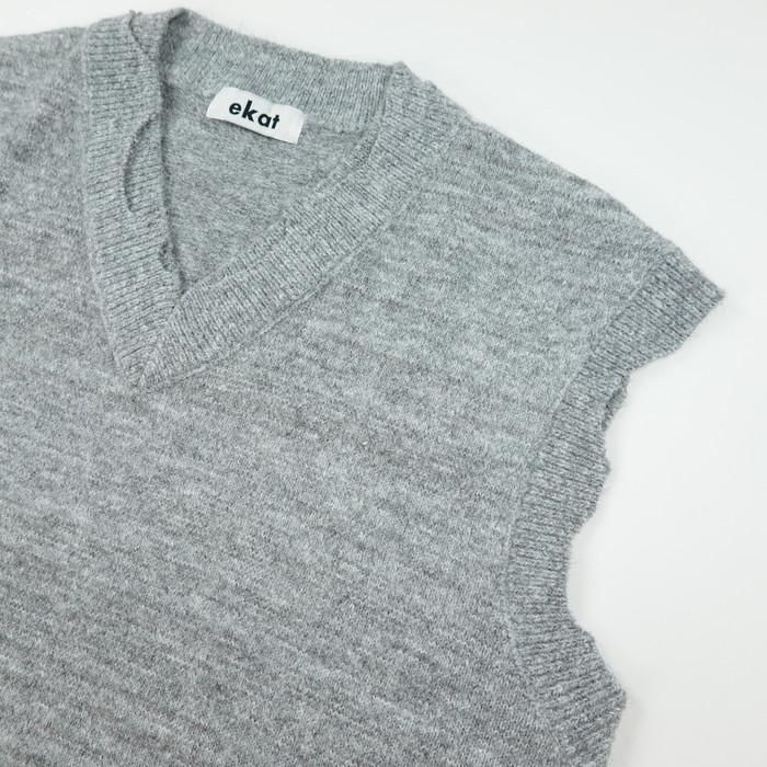 ― ekatらしい遊び心の効いたデザインで、重ね着コーデを一段と格上げするニットベストです。
