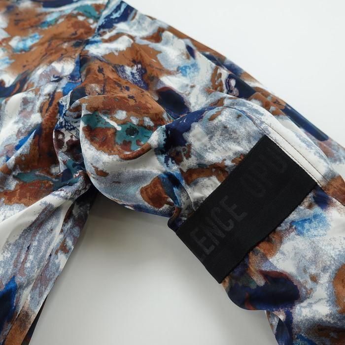 無地のミニマルな表情と、裏面のインパクトある総柄プリント――その日の気分やシーンで「表裏を使い分ける」ことができる、機能的で遊び心のある一着です。