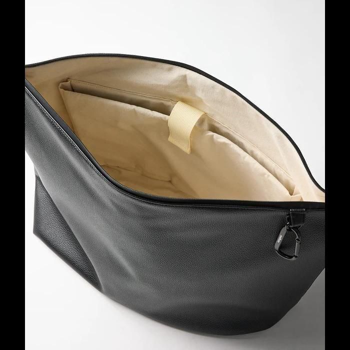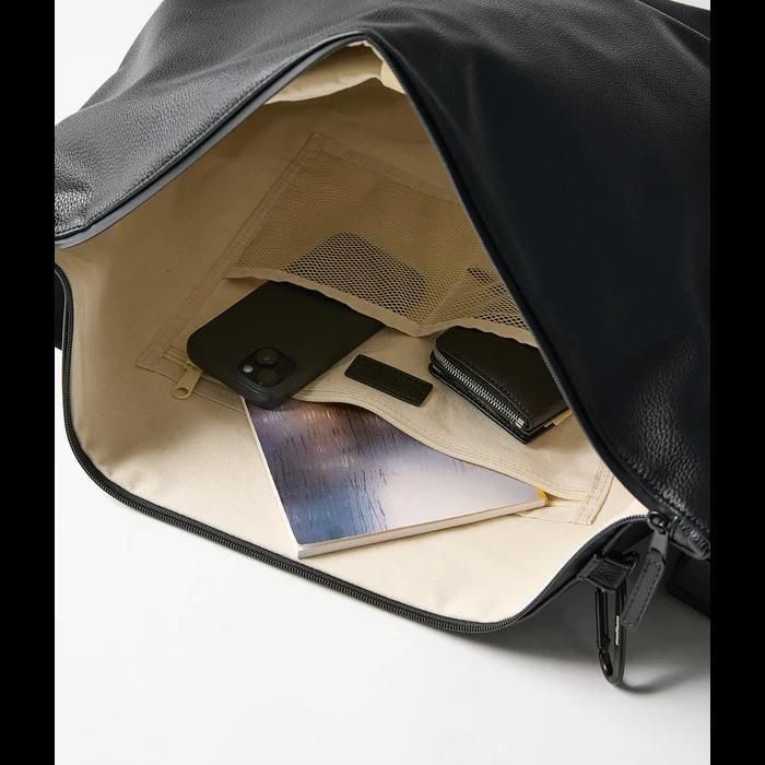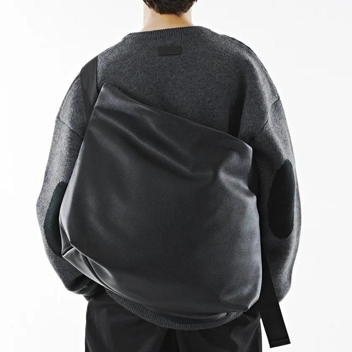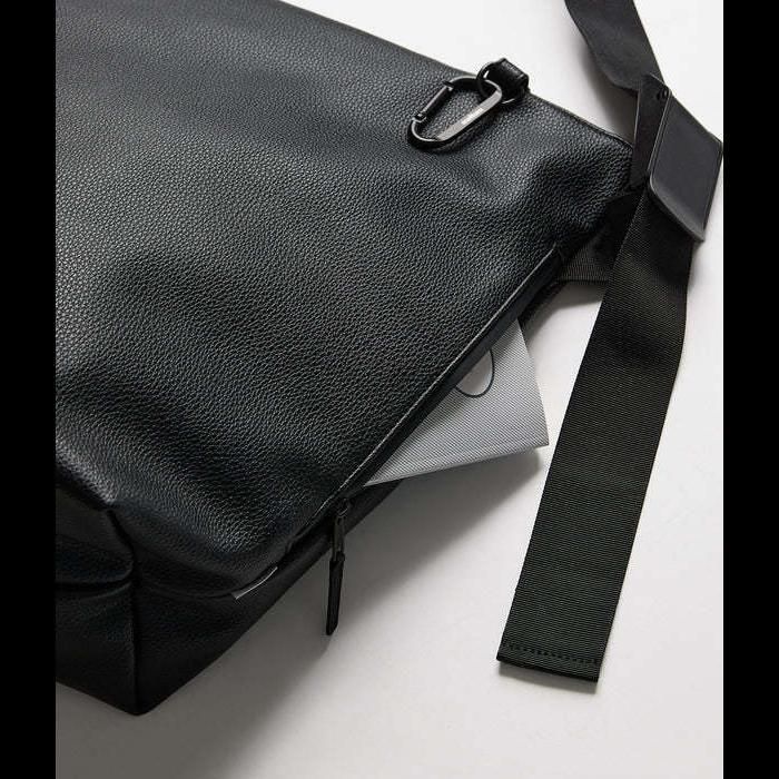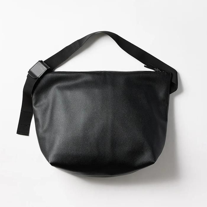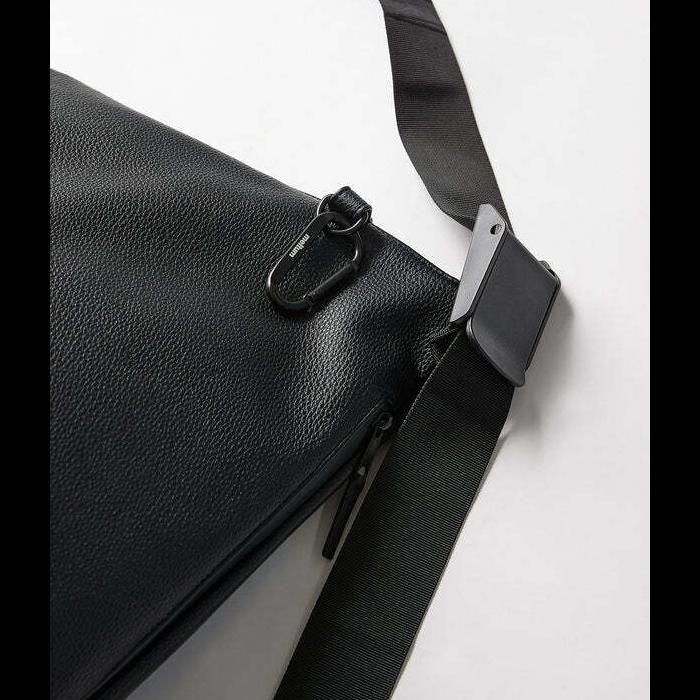 meltumの人気作「NYLON MESSENGER BAG」をベースに、シボ感のあるシンセティックレザーでアップデート。