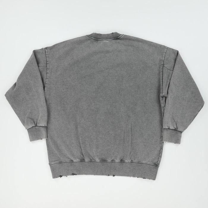 ピグメント加工による独特の褪色感と、衿元・袖口に施したダメージ加工が織り成す“経年の表情”。