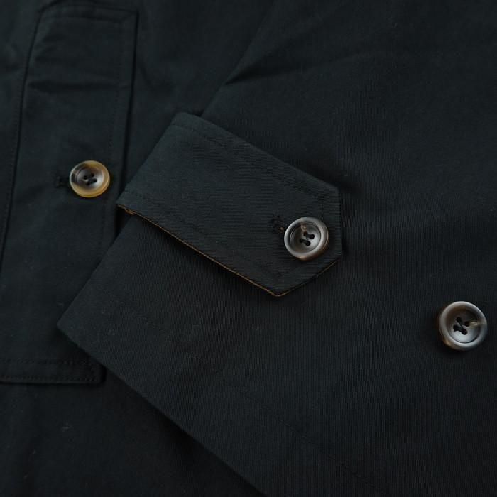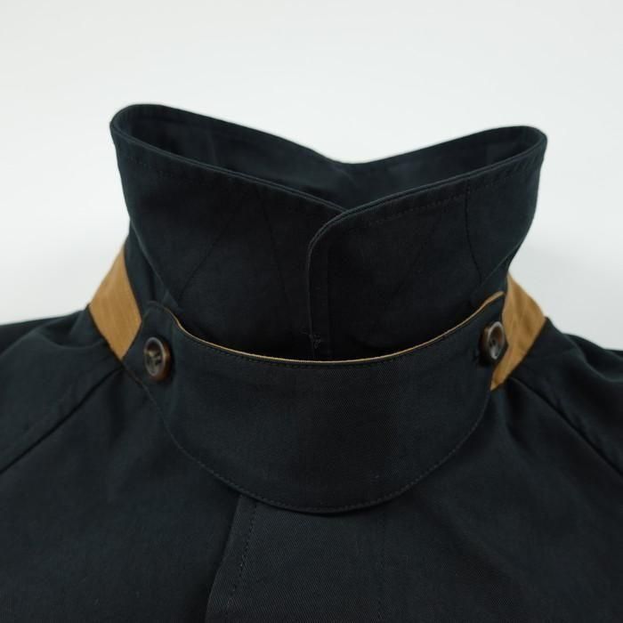 ・台衿、チンストラップ、袖口の裏側を配色にしており、前を開けた時や襟を立てた時にさりげないアクセントとして効きます。
