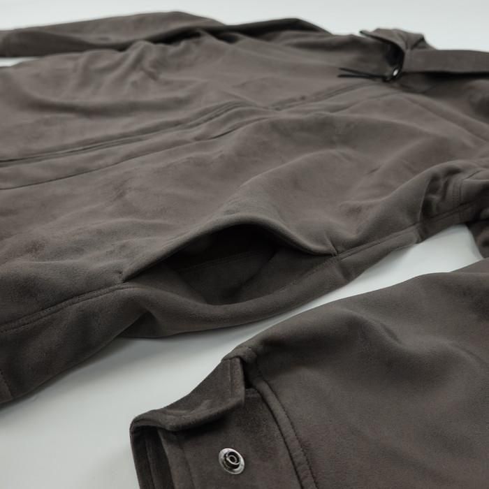 ゆったりとしたシルエットが生む自然なドレープと、スエード特有の陰影感で、着るだけでこなれた印象を作ります。
