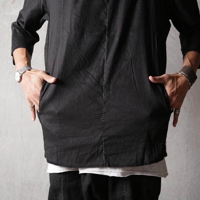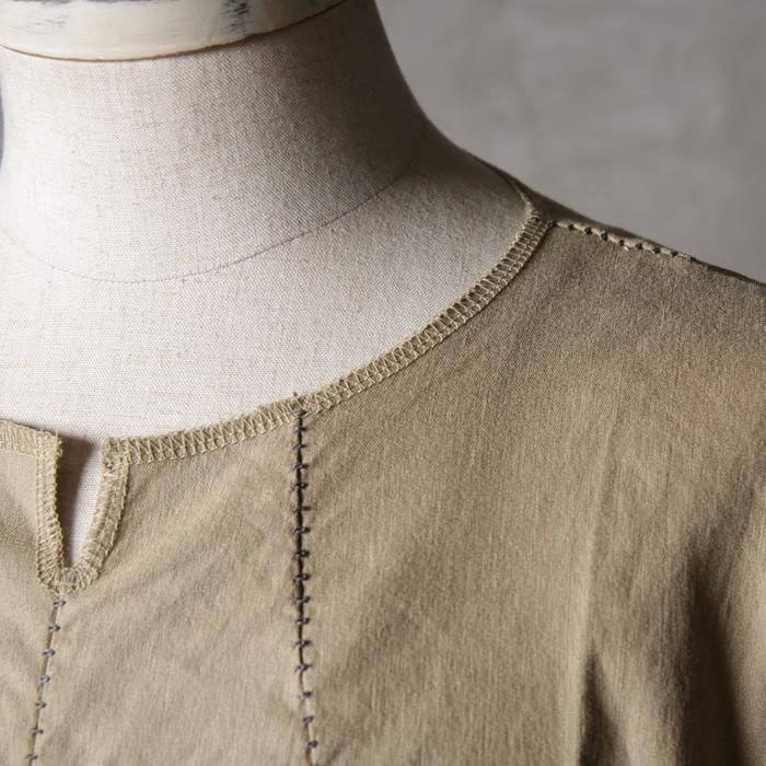 ・脇下を一枚ハギで仕立てることで、アームホールを持たないドルマンスリーブ構造に。