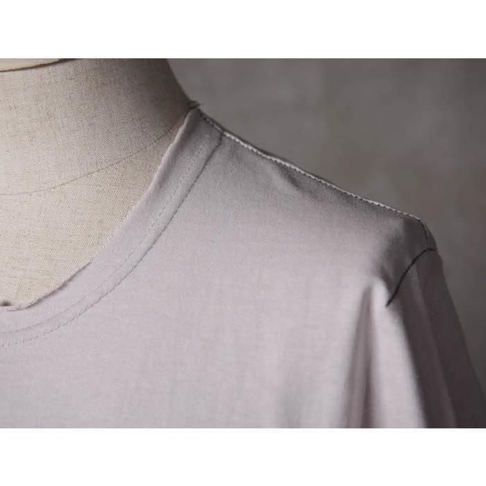 張りのある重厚なコットンニットを用い、カットソーでありながらも着込むほどに表情を増していく──そんな“育てる服”を目指した一着です。