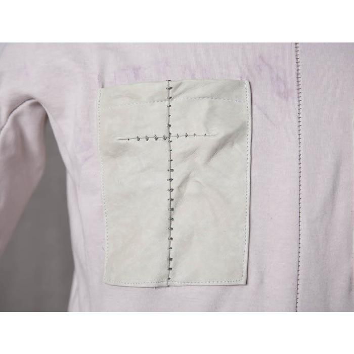 ・革パッチポケット:胸ポケットにクロスダーツを施した革を配置し、見た目の主張と耐久性を同時に実現。