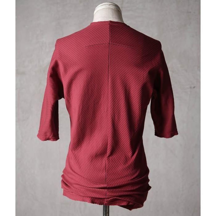 通常なら前身頃・後身頃で分けられるTシャツを、あえて「型紙1枚」で構築する――そんな遊び心が生んだのがこのワンピース型のハーフスリーブです。
